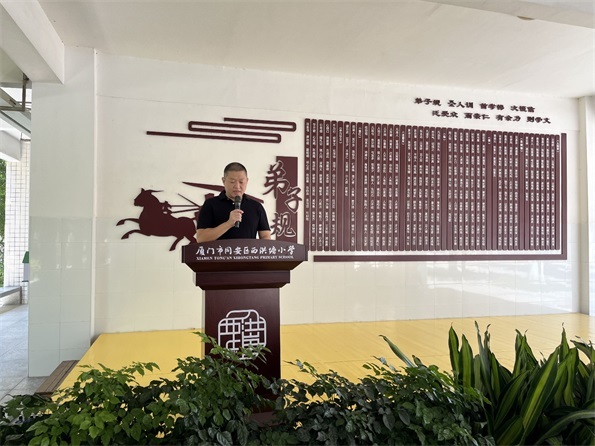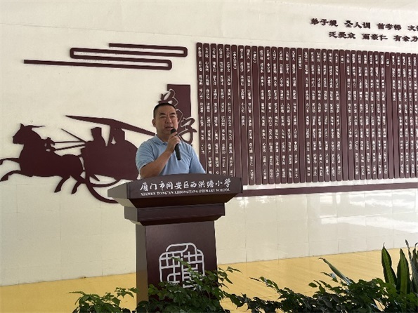 随后,邹总代表公司致辞,介绍此次捐赠活动是我司践行企业社会责任,助力同安区教育事业发展所尽的微薄之力,并表达对于西洪塘小学多年来解决我司员工子女入学的感谢,期望西洪塘小学能够培育更多的祖国栋梁之材。