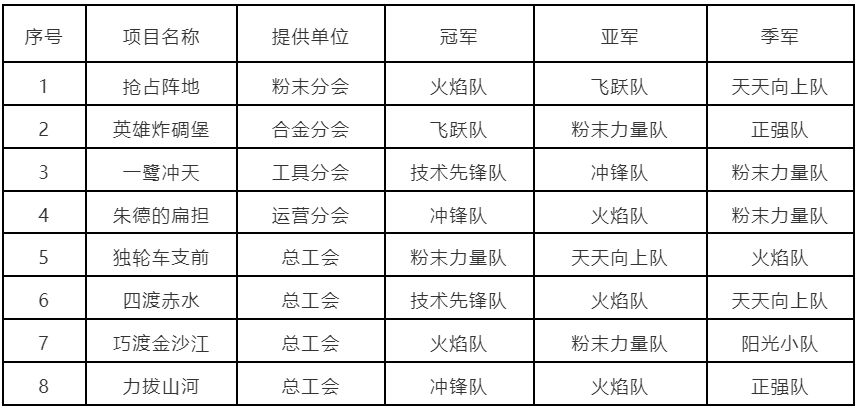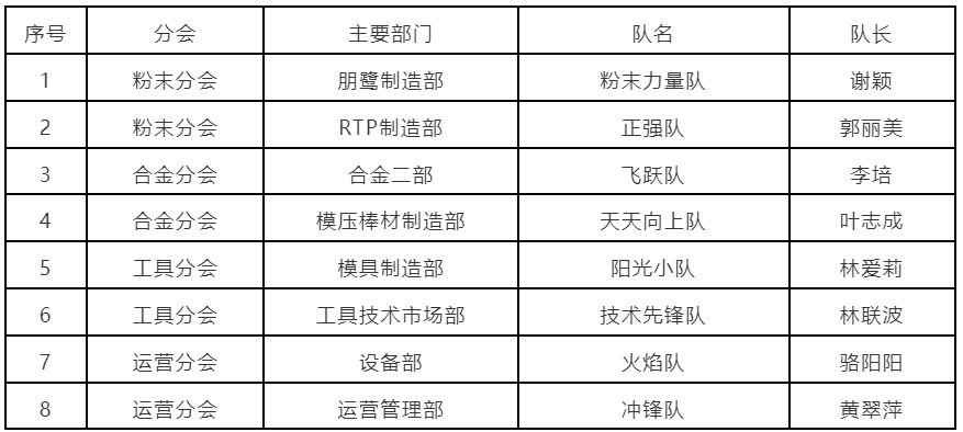 本活动由厦门金鹭特种合金有限公司工会主办,公司团委、各基层工会承办,经过11月份,各分会内部初赛的激烈角逐,最终有8支代表队脱颖而出,站在今天的决赛现场,他们分别是: