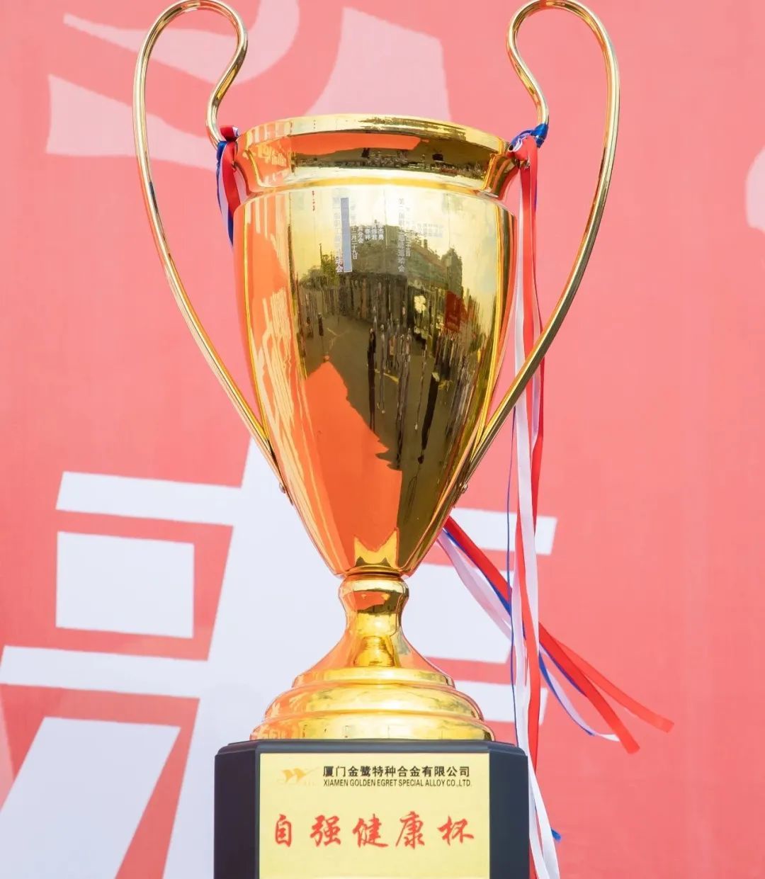 随后姜涛总经理与合金事业一部总经理王明胜共同揭幕—“金鹭自强健康杯”。
