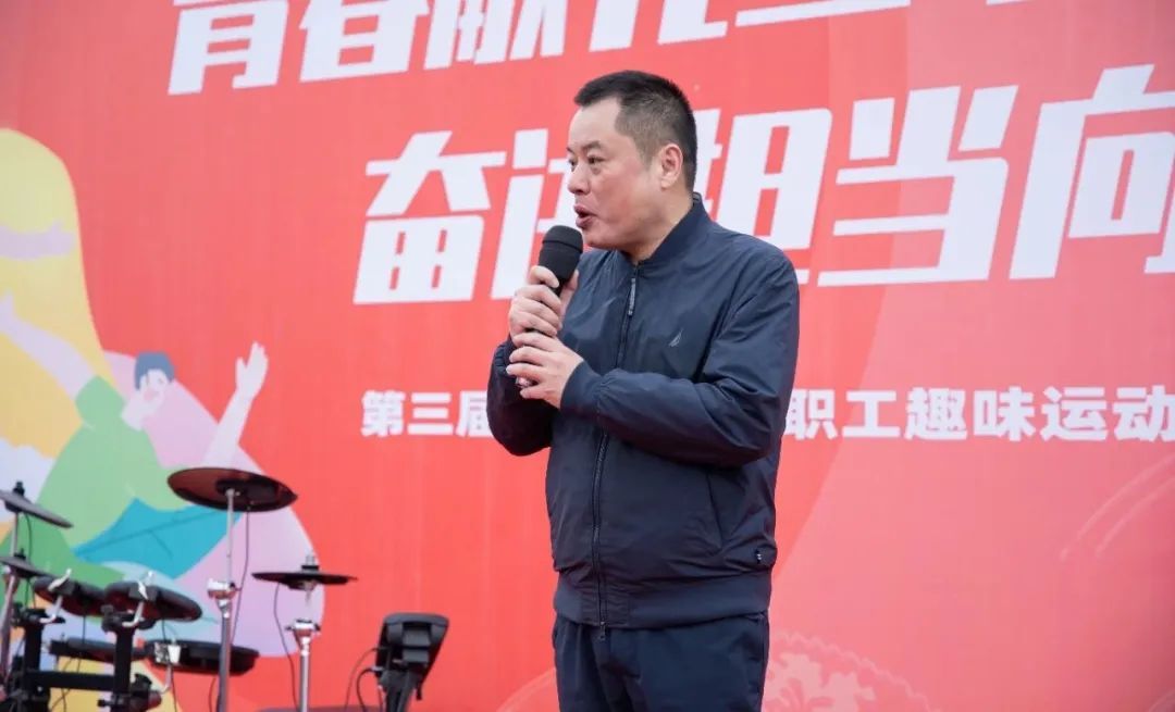 厦门金鹭工会主席邹建平致开幕词。邹总指出,为响应习近平总书记在党的二十大报告中提到要促进群众体育和竞技体育全面发展,加快建设体育强国的号召,特此举办本届职工红色运动会,增强员工的身体素质和心理素质,提高员工的团队凝聚力,展现金鹭职工积极向上、充满活力的精神面貌。