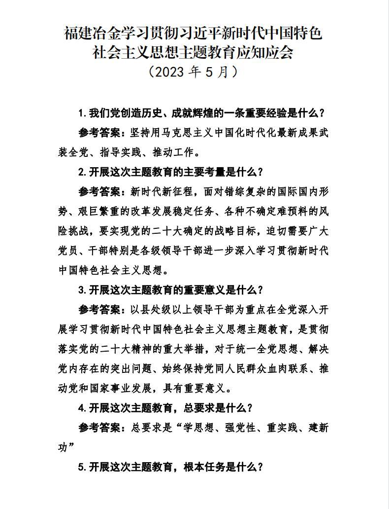 福建冶金学习贯彻习近平新时代中国特色 社会主义思想主题教育应知应会