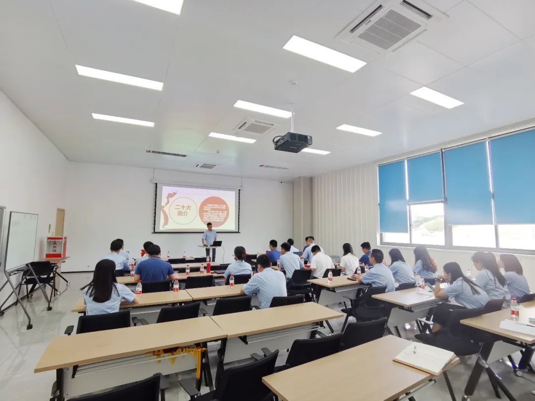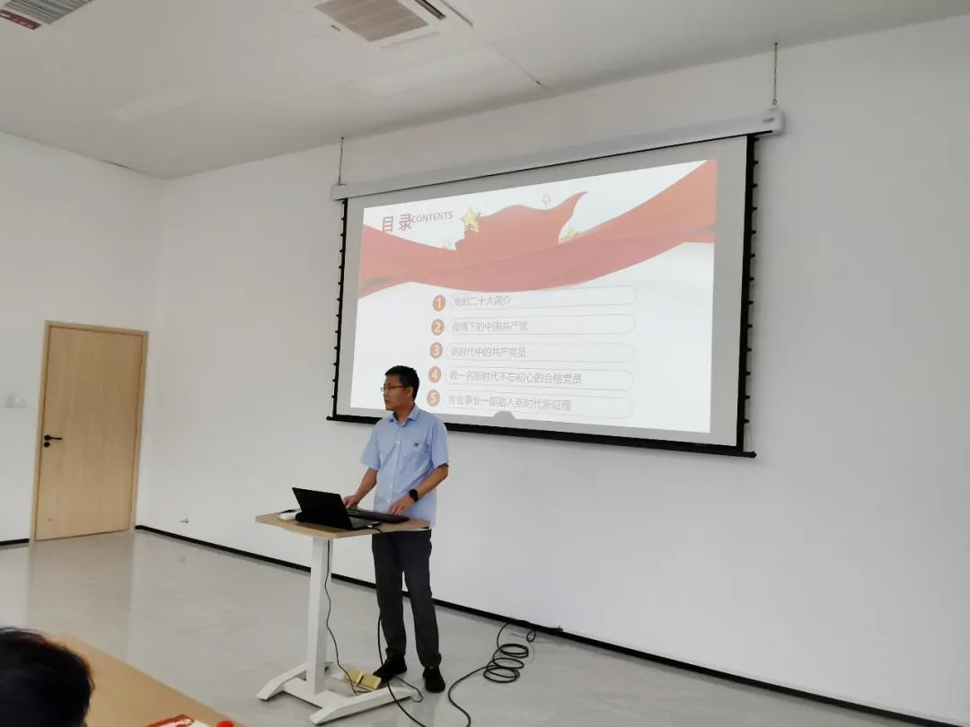 最后,由支部书记王明胜同志为大家讲授题为《喜迎二十大——以优异成绩迎接党的二十大》的主题党课。他对即将召开的党的二十大进行介绍,也讲到近年来疫情下中国共产党人的贡献,再说到新时代中的共产党员的变化,如何做一名新时代不忘初心的合格党员。此外,他还对合金事业一部2022年党建品牌内容与精神进行宣导,今年事业部将整体搬迁至海沧公司,他希望大家能够尽快适应海沧公司的全新工作环境,扎实立足本职岗位,勇于担当,创新进步。