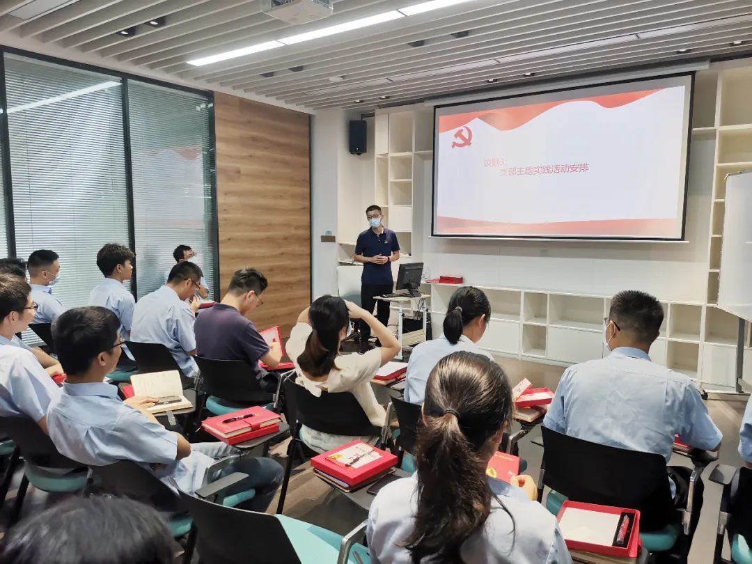 最后由文体委员陈炤枫介绍支部第三季度的主题实践活动安排,包括红色景点学习,志愿活动等等,进一步丰富党建活动,提高党员使命感与责任感。