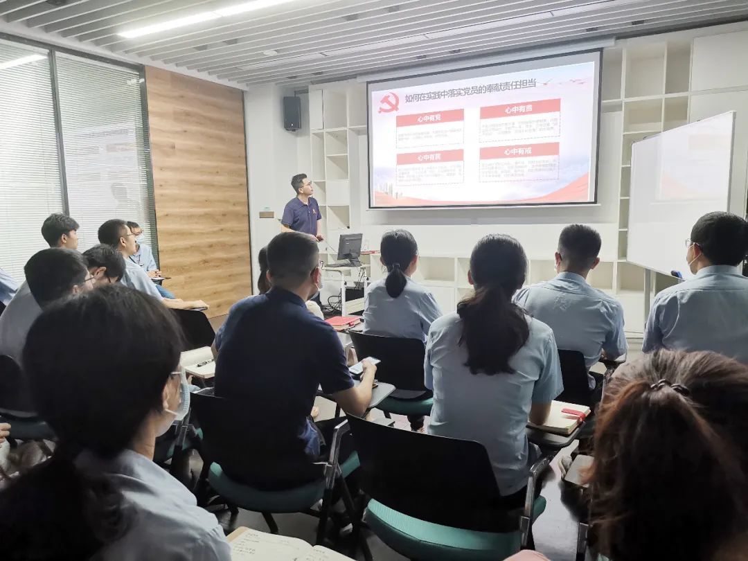 首先由支部书记林亮亮进行党课的分享,以《喜迎二十大,奋进新征程——以优异成绩迎接党的二十大》为主题进行分享。他讲到,作为新时代合格党员,要勇于担当敢于作为,践行初心,担当使命,积极弘扬伟大党建精神。除此之外,他还结合新时代和新环境对如何发挥党员先锋模范作用进行了分享和总结。