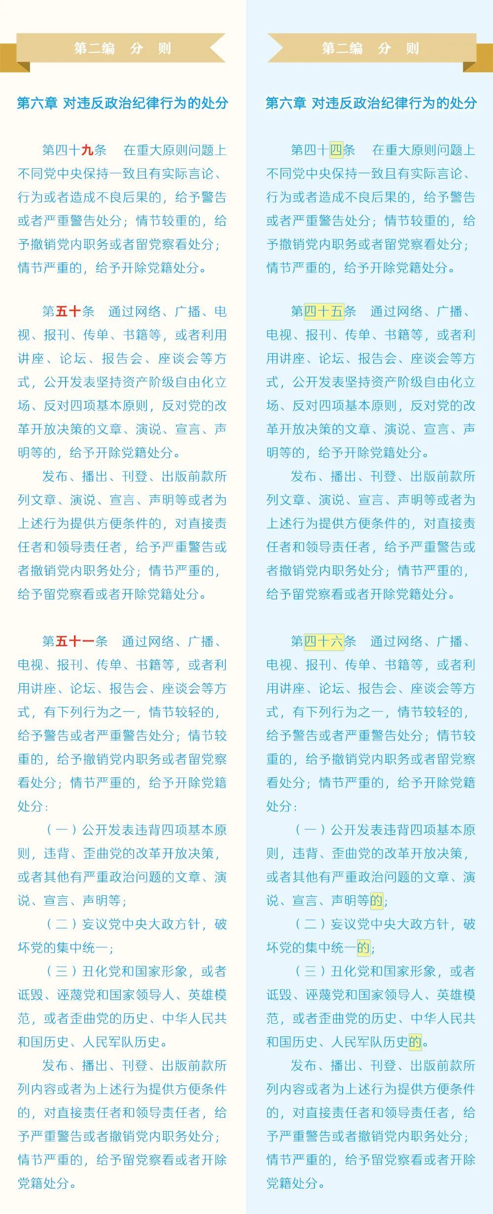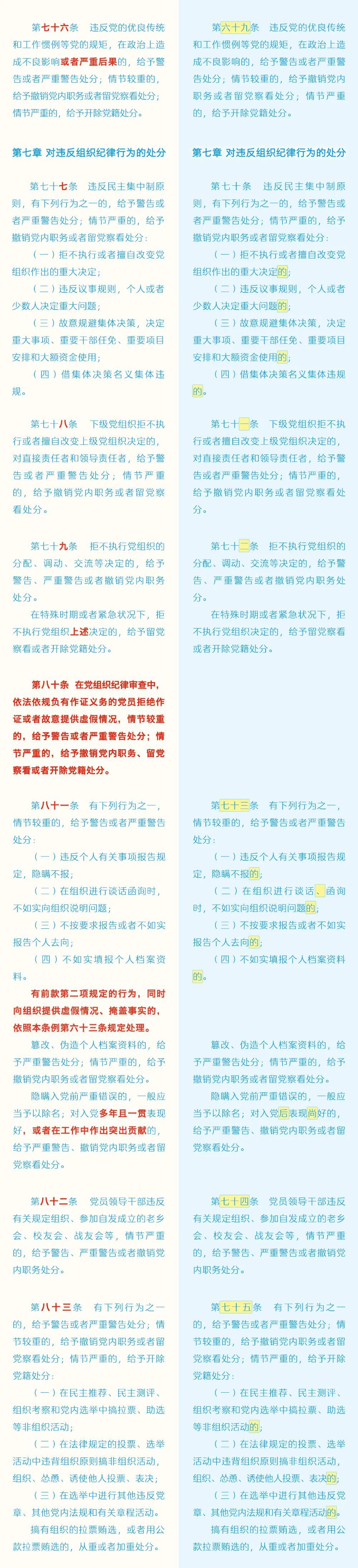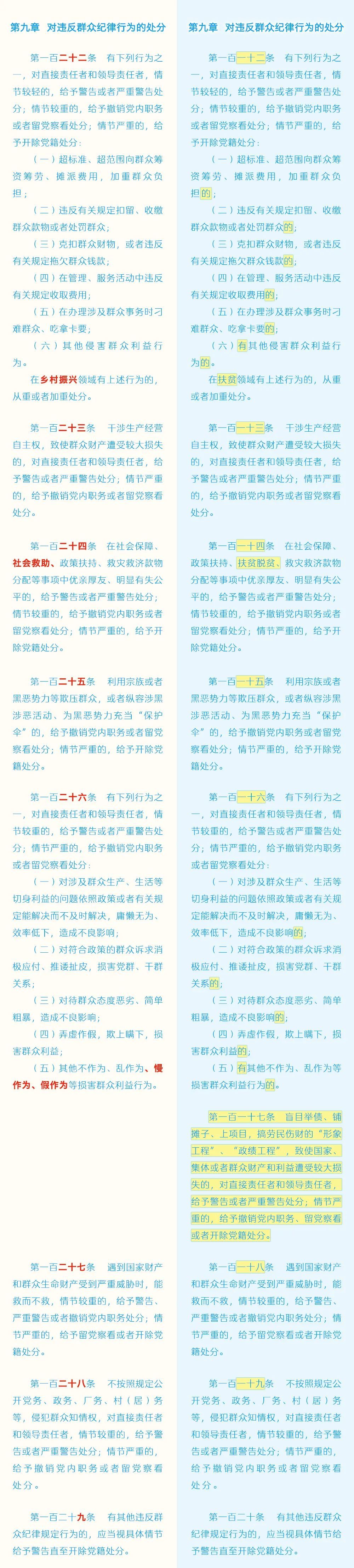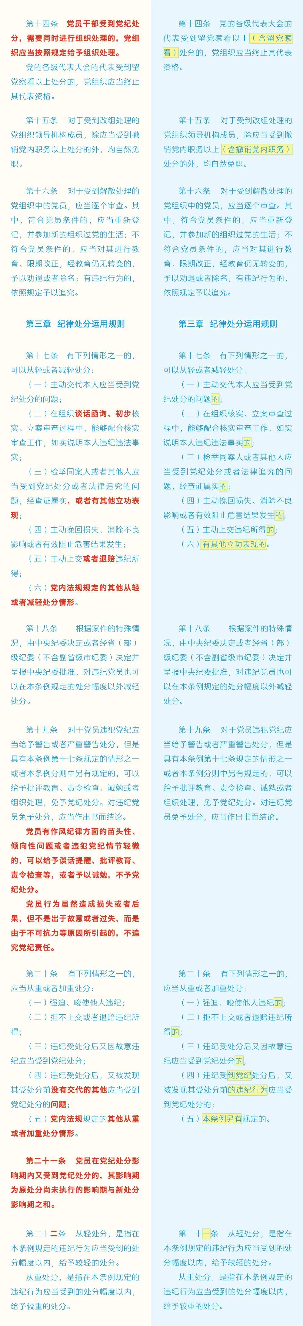 《中国共产党纪律处分条例》修订条文对照表