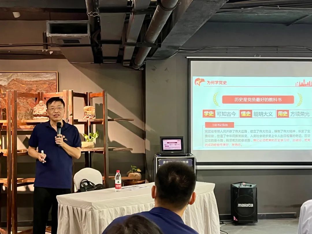 随后,公司党委委员林高安从“为何学党史、如何学党史、党的百年辉煌”三个方面,为大家讲授以《认真学党史,喜迎二十大》为主题的党课。林总强调,学习党史的过程中要做到求真、求深、求实、求新。课程结束后,众人观看《建党伟业》影片,进一步学习了中国共产党成立时期的重要历史事件。