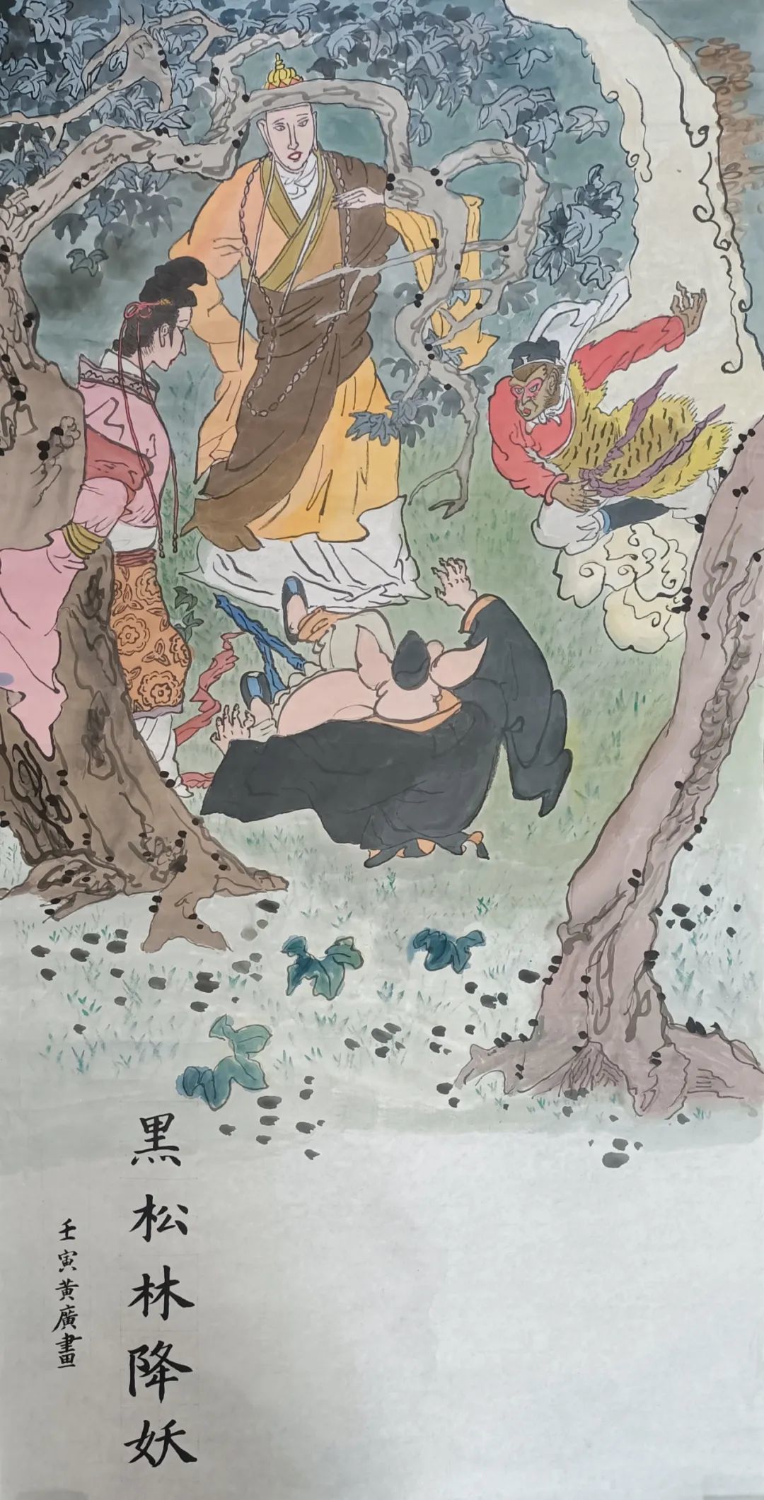 在第一节课程,老师向同学们介绍了使用毛笔的技巧,概括为“提、按、转、折”,国画课程也是如此。这是我们主题书画同源的意思,书法的技法与国画的技法是相通的。