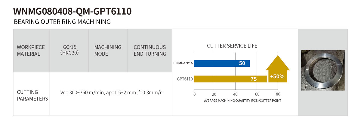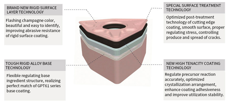 ● GPT6110Hohe Abriebfestigkeit, anwendbar für die Hochgeschwindigkeits-Feinbearbeitung von Kohlenstoffstahl und niedriglegiertem Stahl unter Dauerbetriebsbedingungen.