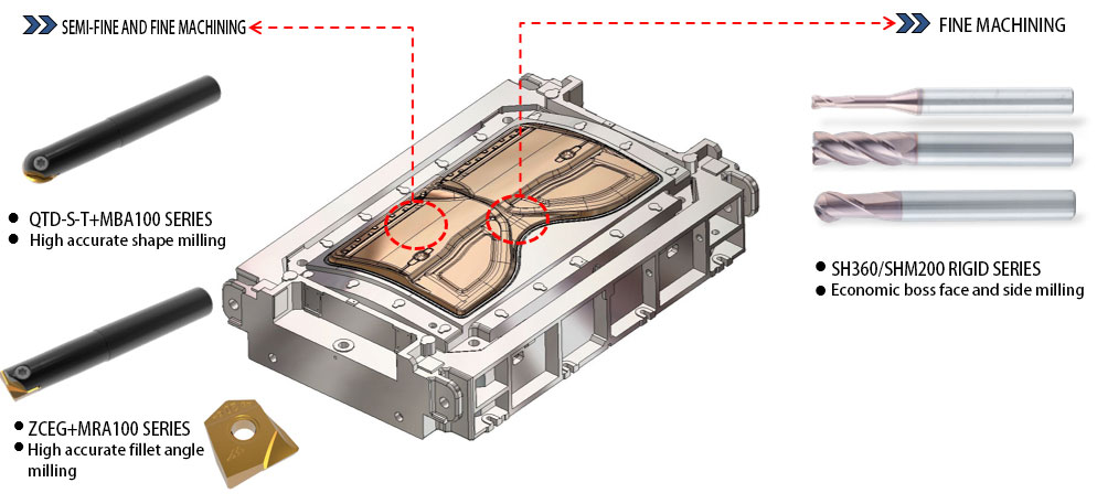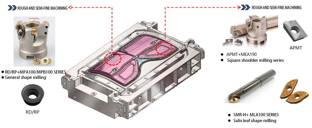 Определение штампа: штамп - это промышленный продукт, который формирует материалы в специальной структуре и определенном режиме, а также производственный инструмент, который может производить детали промышленного продукта с определенными требованиями к форме и размеру в партии. С почетным званием «Мать промышленности» он имеет штампы, штампы для штамповки, пластмассы, литья, ковки, порошковой металлургии, резины и формовочных формовочных формовочных материалов. Штамп - это специальное технологическое оборудование, которое обрабатывает материалы (металлические или неметаллические) до деталей (или полуфабрикатов) при холодной штамповке, известное как штамп холодной штамповки (также известный как штамп для холодной штамповки). Здесь выделено решение для обработки штампа для пробивки автомобильных панелей. Автомобильная дверная панель перфорирована из матрицы, а качество матрицы напрямую влияет на защиту от столкновений, герметизацию и удобное открывание и закрывание автомобильной двери. К распространенным материалам штампов для пробивки автомобильных панелей относятся SKD11, DC53 и Cr12MoV с твердостью материала около 60HRC. Фрезы должны соответствовать требованиям к высокой точности и качеству обработки, а также к длительному сроку службы. Решения Xiamen GESAC для штампов для пробивки автомобильных панелей охватывают черновую и полутонкую обработку до и после термообработки, кольцевое фрезерование, обработку отверстий и другие процессы, способные обеспечить комплексные решения для обработки.