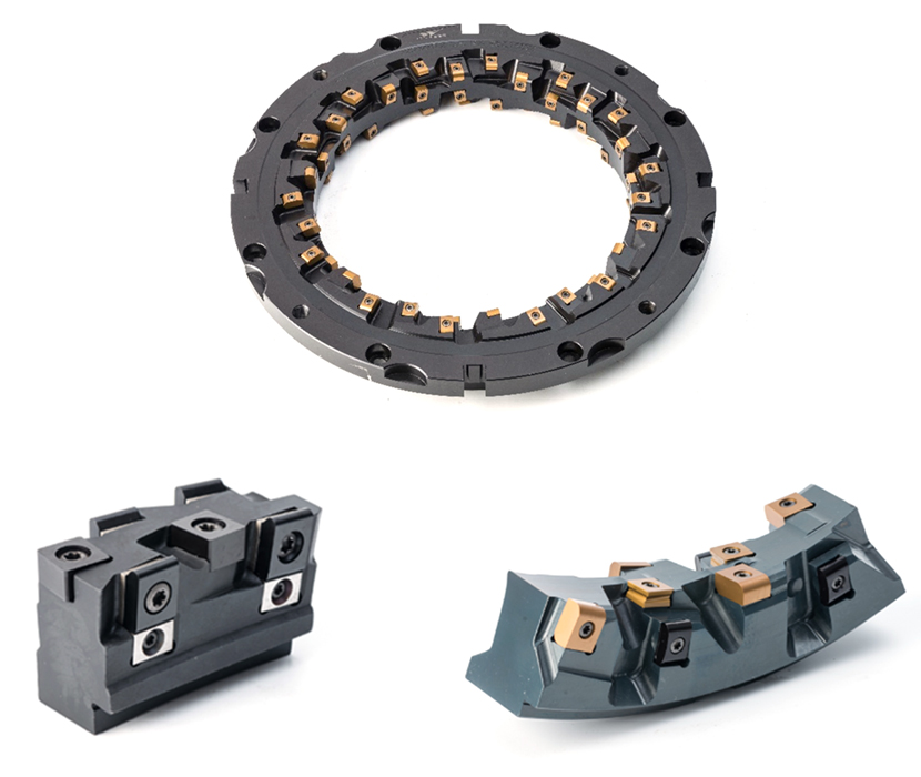 内外铣刀盘:按结构分为整体式和模块式刀体。最大直径可达1000mm,加工宽度可达50mm。接受普通及可调式精铣刀夹定制。